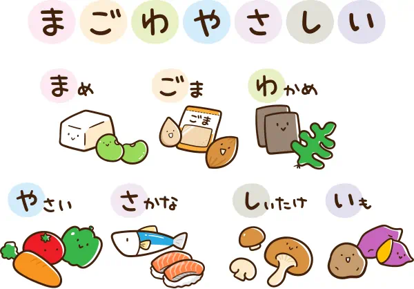 「まごわやさしい」ということばを聞いたことがありませんか?栄養バランスの良い食生活を送るための7つの食材の頭文字から作られたことばです。